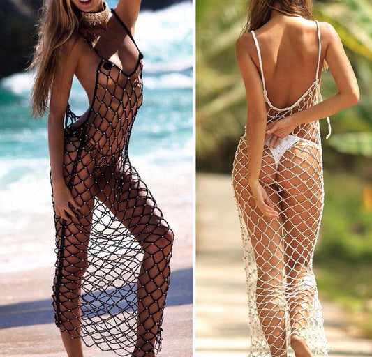 Beachwear Fishnet Beaded Dress