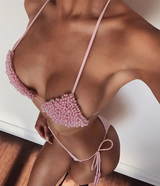 Pink Ribbon Bowknot Open Cups Lingerie Set