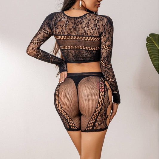 Black Halter Backless Cut-Out 2-Piece Lingerie Set