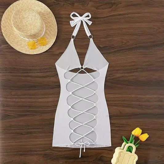 White 2pcs/Set Ladies Sexy Lace Lingerie Dress